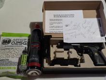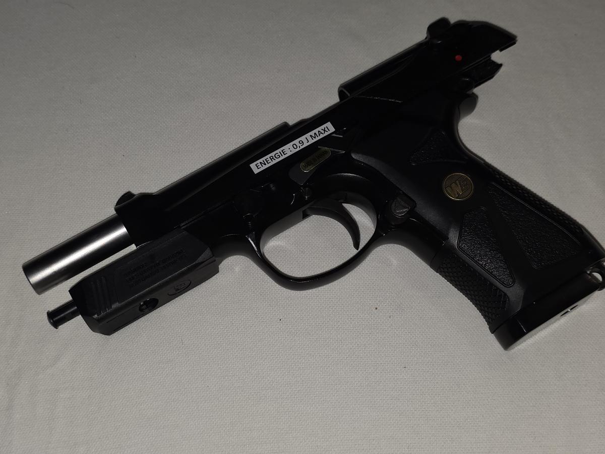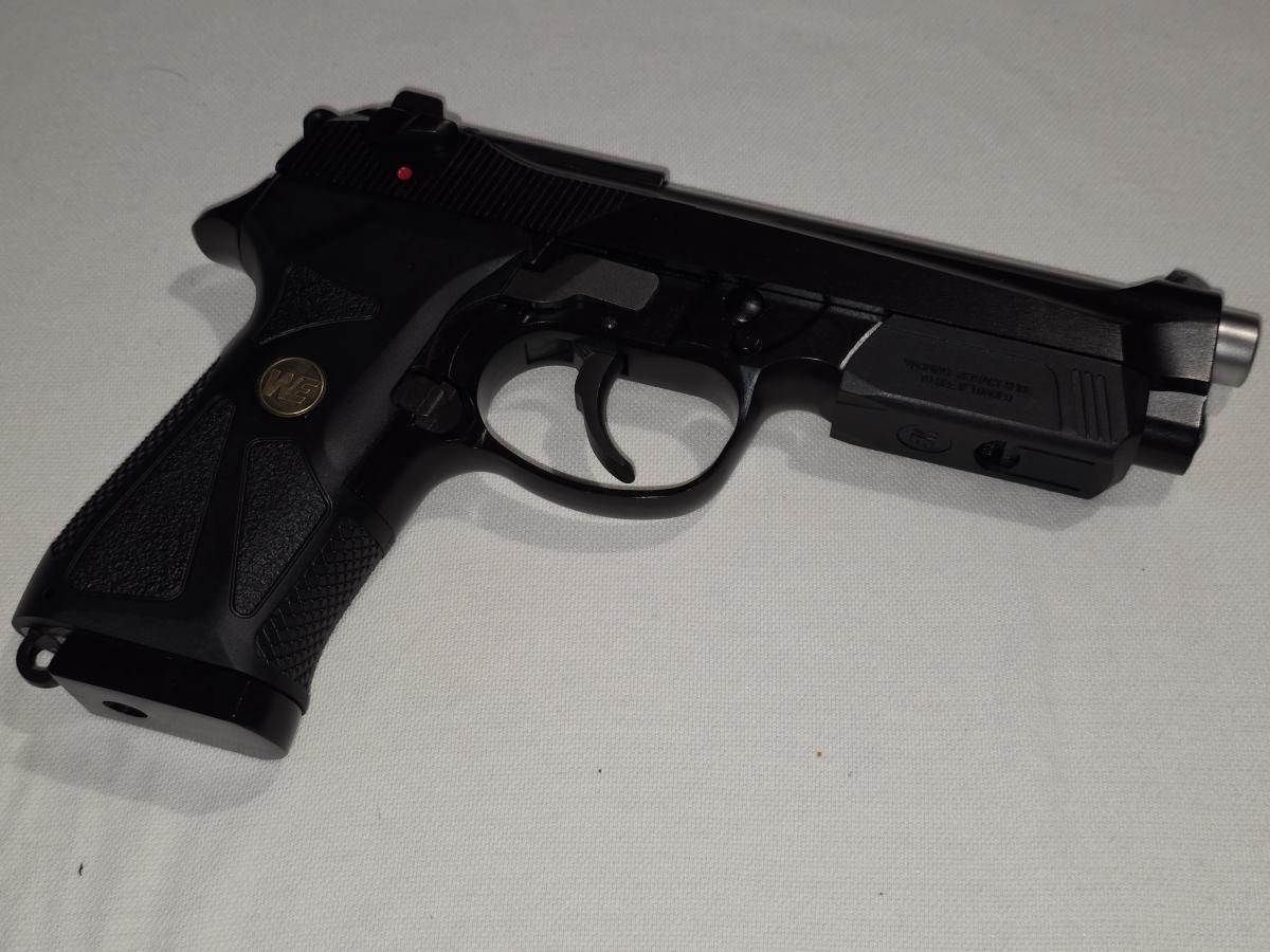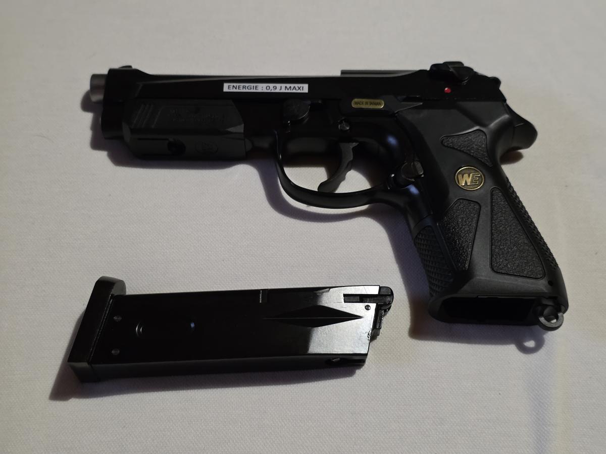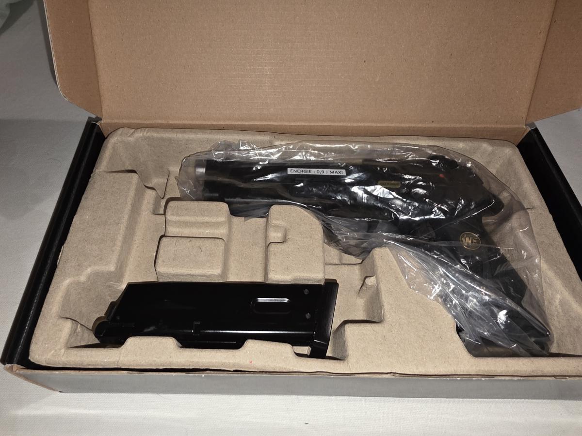 Evike mystery boxból vásárolt WE márkájú blow-back Beretta 90 Two gázos airsoft pisztoly, vadonat új, kb a fotó kedvéért bontottam ki és annyi red gázt töltöttem bele hogy kipróbáljam lövedék nélkül. Bivaly erős százhátrasiklás ,mint az igazi.Hangja is van rendesen, de a ráírt 0.9 Joule - nál tuti erősebb, gondolom a gáz típusa sem mindegy. Erre most pont nincs szükségem ,így bőven áron alul hirdetem meg ,csak a fegyver ára 110 Eur+szállítási költség 24 eur, nem beszélve a többi kiegészítőről melyek bontatlanok.Kb 1 kg a pisztoly, van benne anyag.