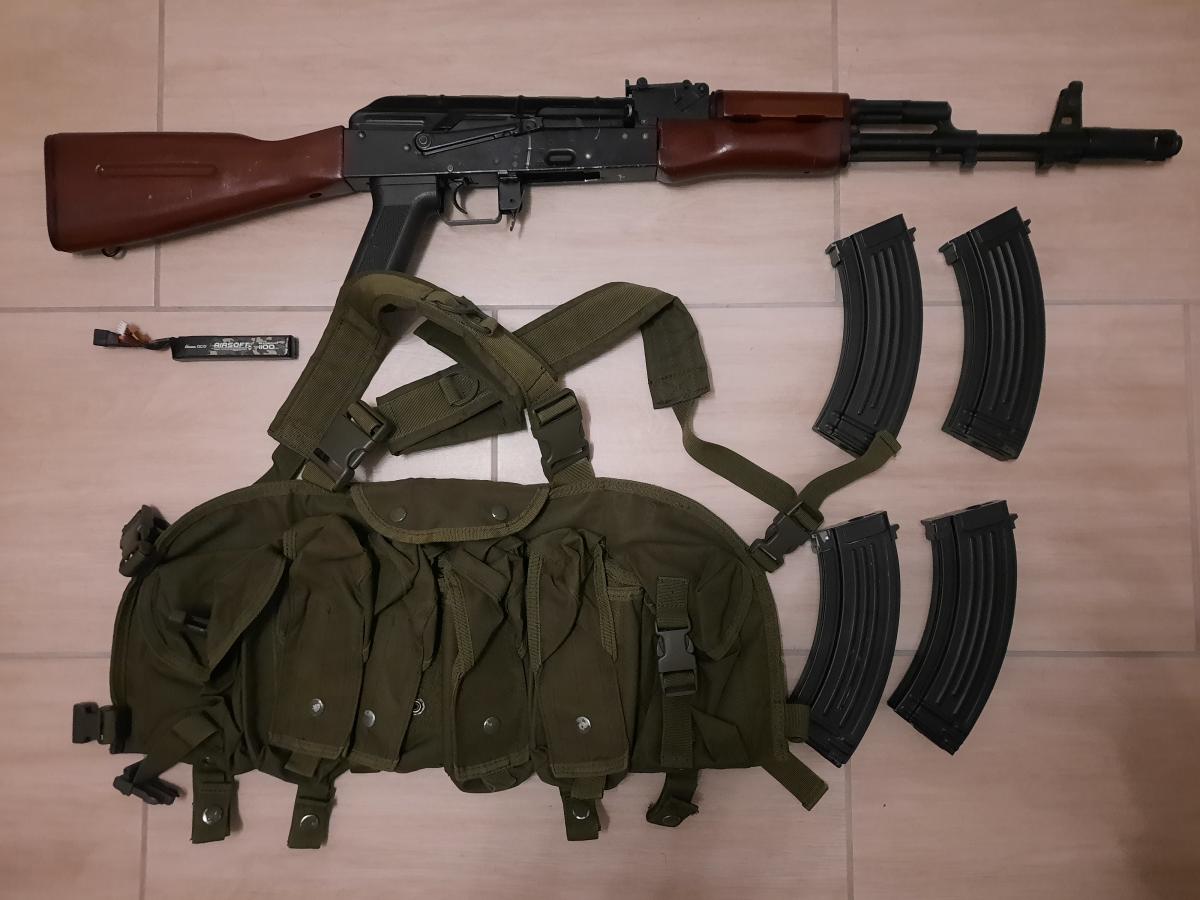 Eladó es másodkézből szerzett AK-74. Stabil, jó pusek, 370fps körüli, alu öntvény test + fa. A fém részek kicsit kopottasak, de nem vészes.