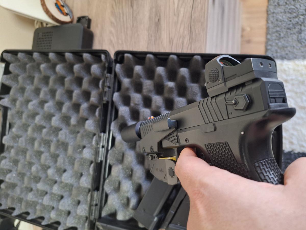 Üdv!Eladó címben említett AEPem.Működni működik szépen, bár egy hopup gumi csere lehet ráférne már.Néha nehezen veszi fel a BBket.Jár hozzá a kis műanyag koffer, az övön való hordáshoz az adapter kompletten, 4 db tár, aksi, reddot, traceres hangtompító(kicsit ez viseletes, de működik) A Fegyverlámpa NEM jár hozzá csak.