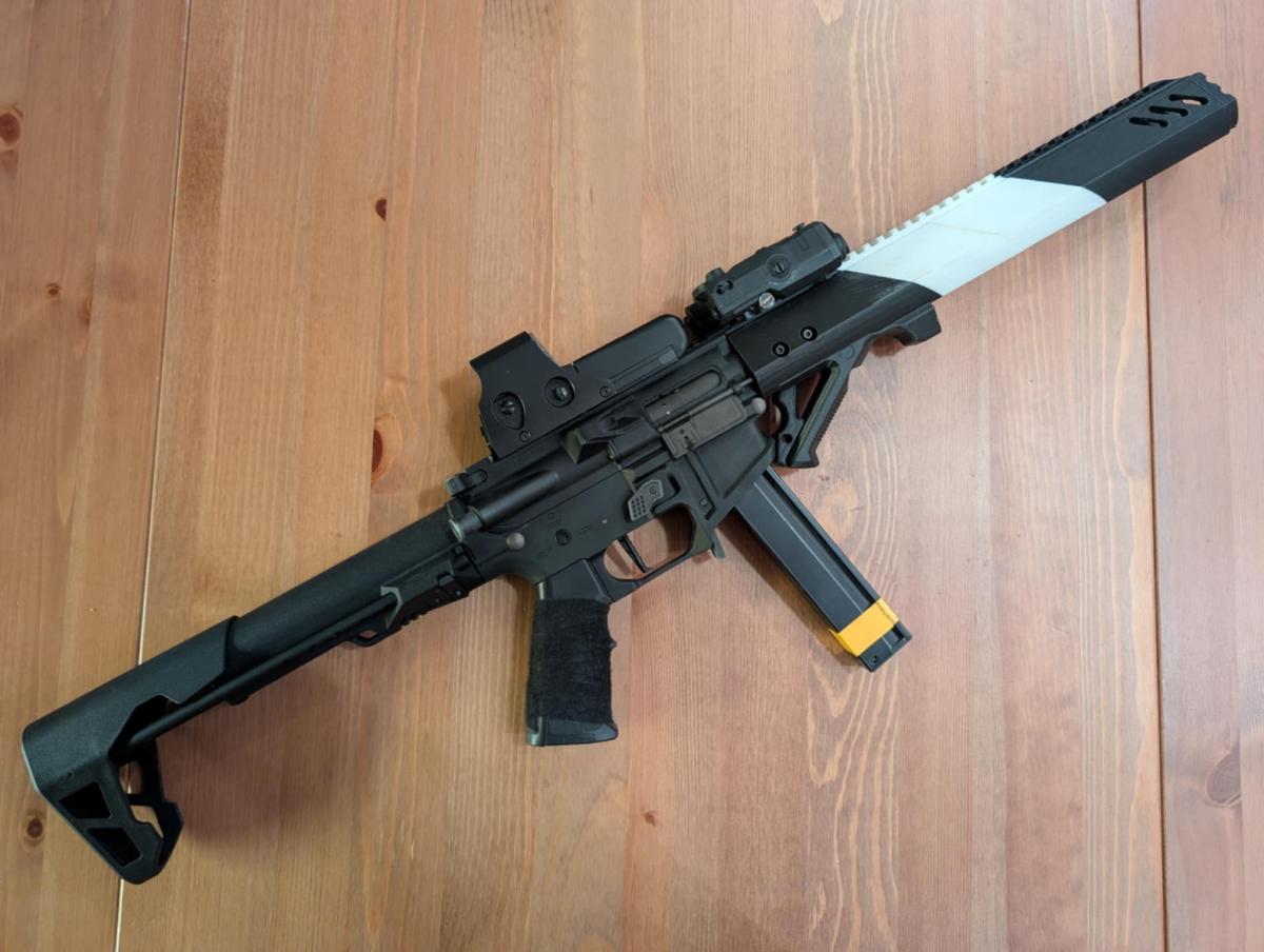 - 3D nyomtatott bullpup kit, amivel bullpup rendszerűvé lehet alakítani a gépet