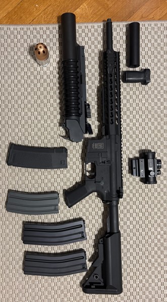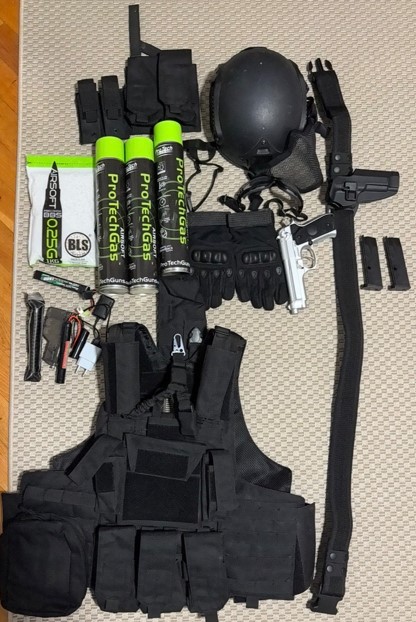 - Taktikai mellény, benne a platekkel, jó pár darab MOLLE kiegészitő (tár tartó, pisztolyhoz, fegyverhez is stb.)