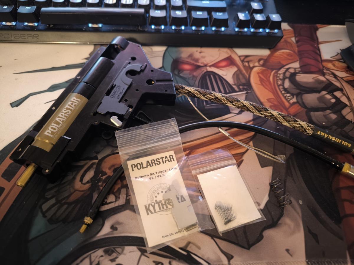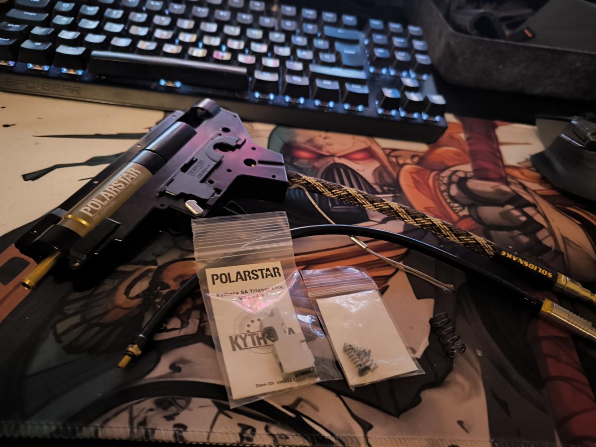 A Kytherahoz megvan mind a két rugó ( 130 Psi alatti és feletti ), tartalék trigger link és egy Amped Airsoft fonott kábel US csatival