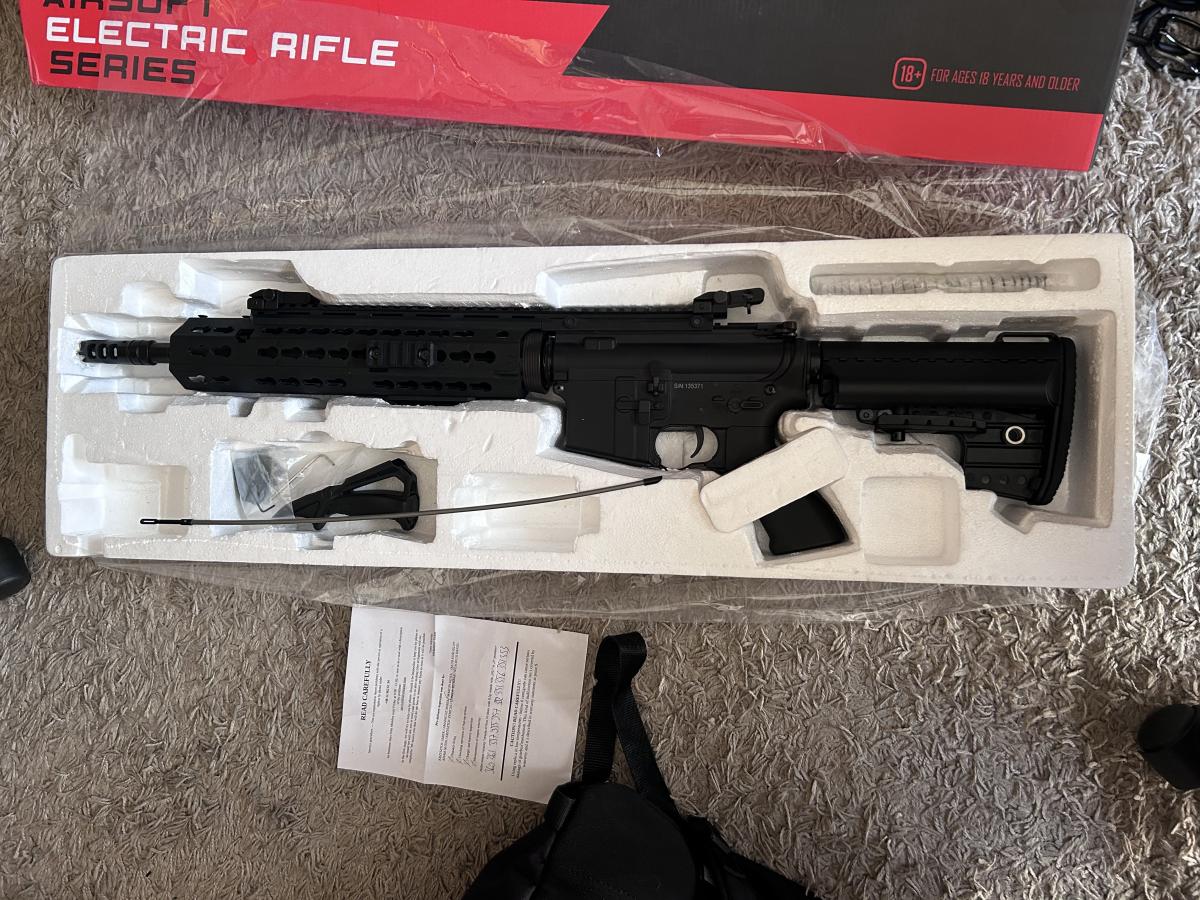 Hibátlan működésű Cyma CM.619 M4 AEG gépkarabély. Sérülés mentes stabil abs ház. 8,4V 1100 mAh akkumulátor + töltő. 360 mért átlag fps.