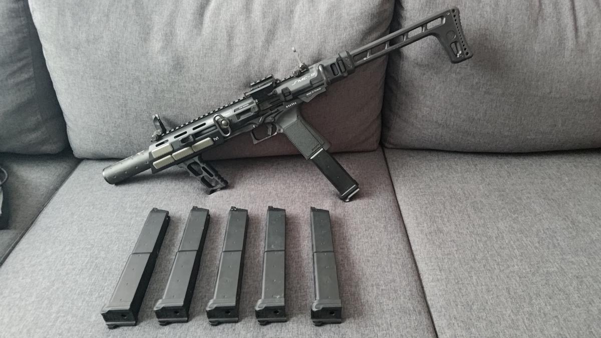 A fegyver mellé adok 6 darab tárat, egy Stubby Killer hangtompítót, Keyhole takarókat, egy szerelék magasítót, egy első markolatot, az eredeti kompenzátort és egy bontatlan cső-központosító gyűrűt.
