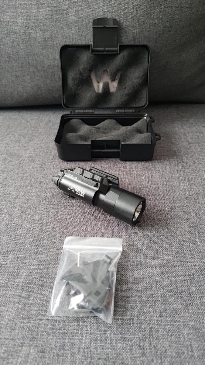 Eladó képen látható X300-as pisztoly lámpa, dobozában, kiegészítőivel