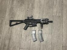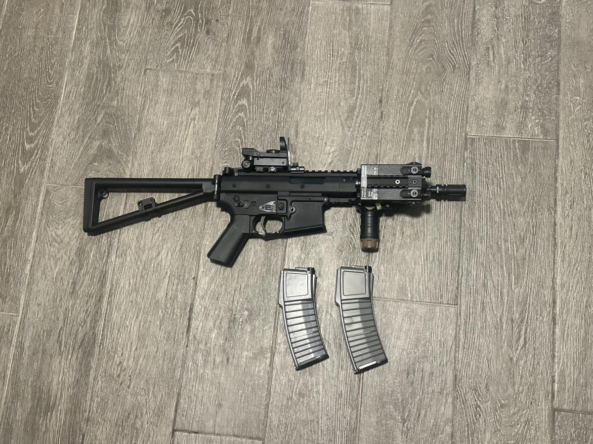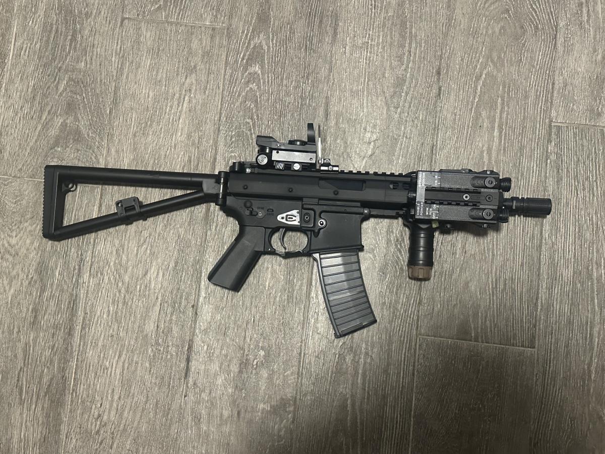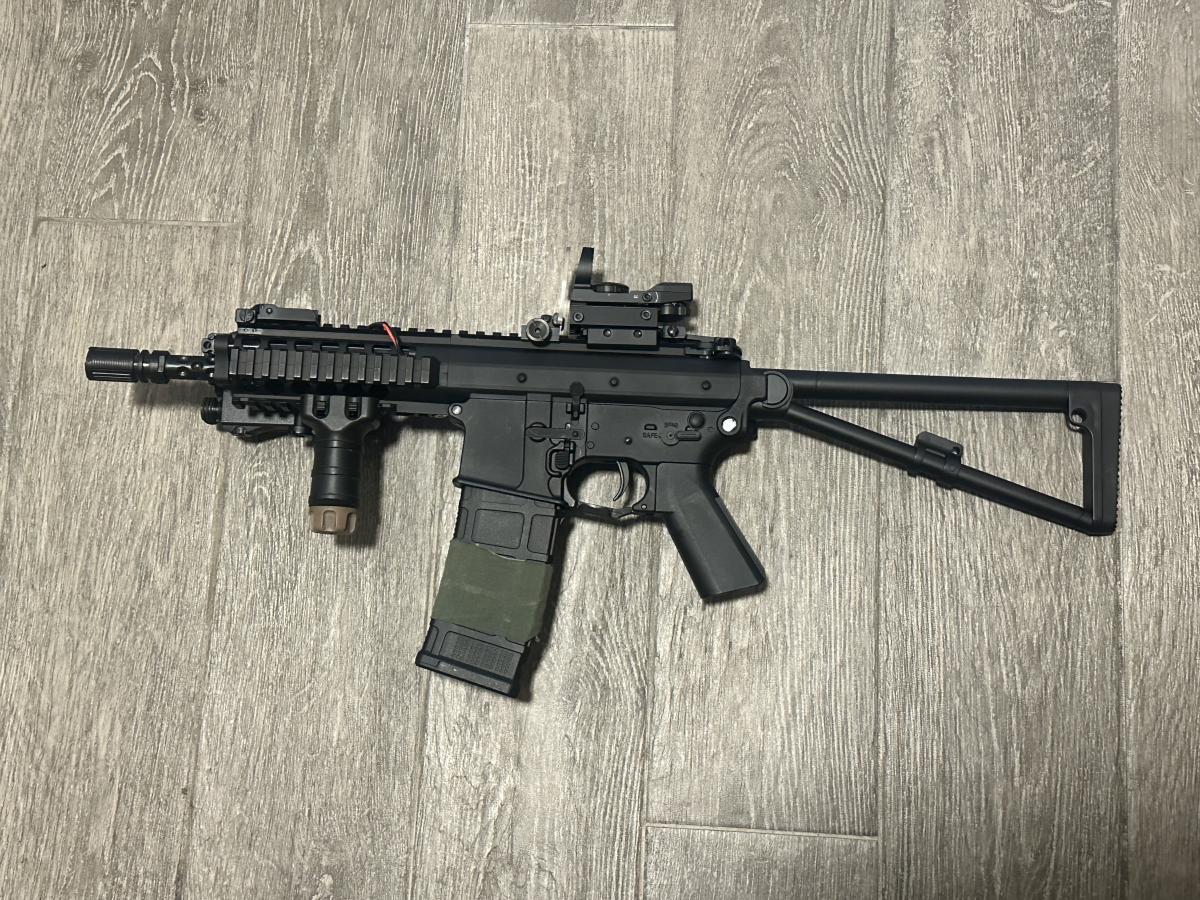 Frissen újrakent, egy akksi kell hozzá és hadra fogható. Tamiyával van jelenleg kivezetékelve a peq boxhoz. Tárak tekintetében jól adagol a saját midcapjével, ezen kívül kompatibilis a pmag stílusú m4 tárakkal. A stanag tárak nem férnek bele.