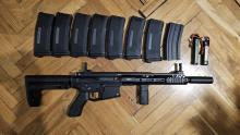 Eladó a képen látható fegyver és tartozékai. Egyetlen egy játékon járt a présháznál azon kívül nem volt használva.