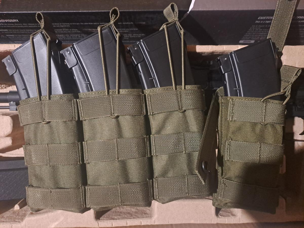 Fegyver, gyári tár, csererúgó, doboz, fegyvszíj, 2 palack bontott bb, 4 db low cap tár, 2 tárzseb( 1 tripla és 1 szimpla), 1 tárdobó zseb