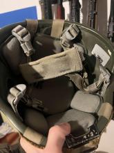 Eladó kevlár MICH2000 sisak, Multicam huzattal és mounttal, festve.
