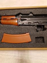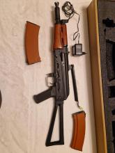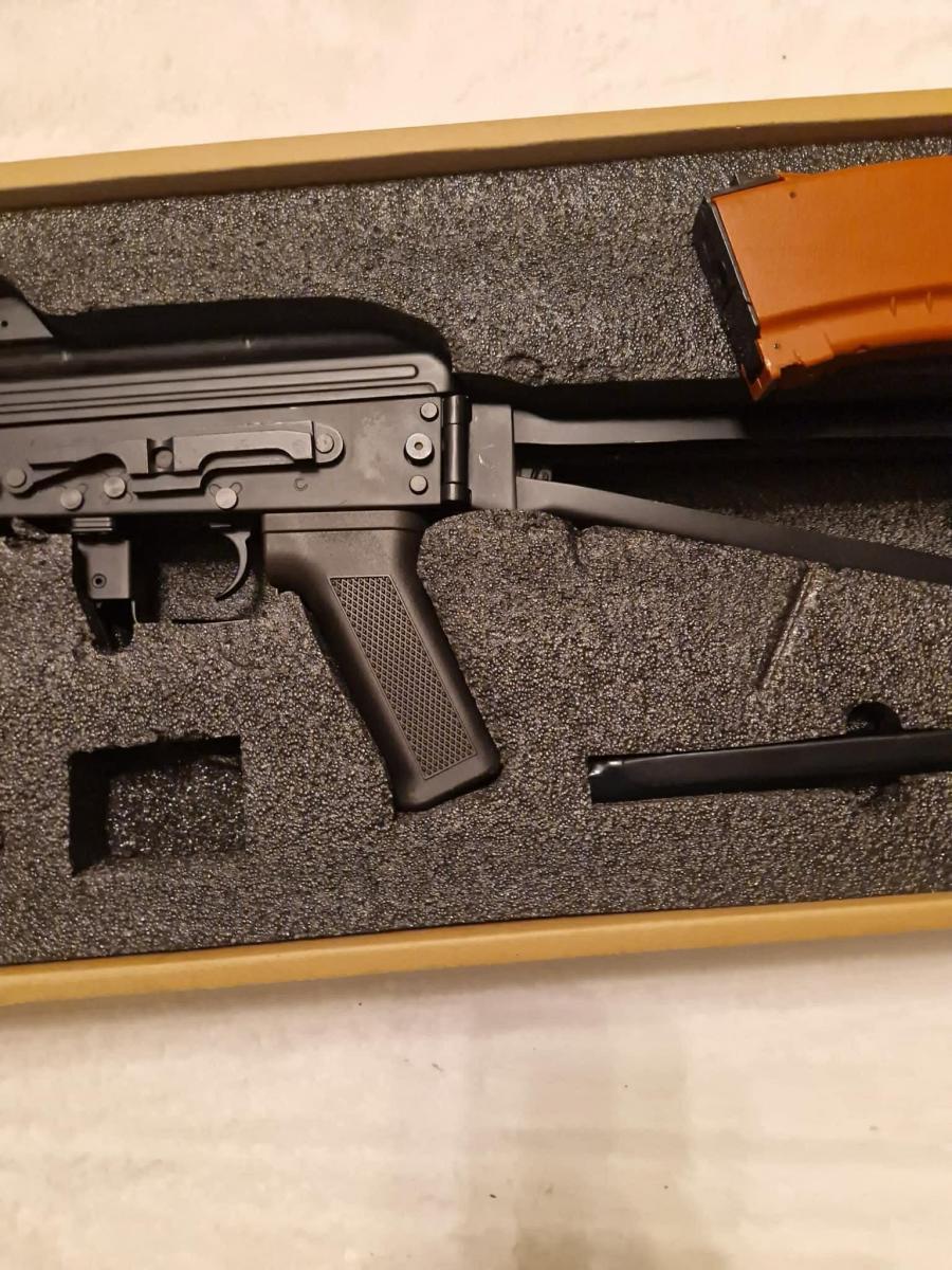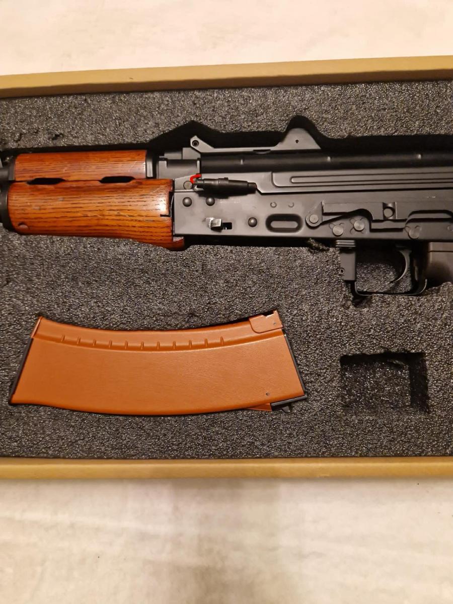 Kihasználatlanság miatt eladóvá vált egy CYMA-gyártmányú AKS74U fém, fa Airsoft puska. Újszerű állapotú, kétszer volt használva. A fegyverhez gyárilag járó két tár műanyag, valamint ajándékba adok 5000 db lövedéket. Ár: 75.000 forint + szállítási költség, Budapesten személyes átvétel.