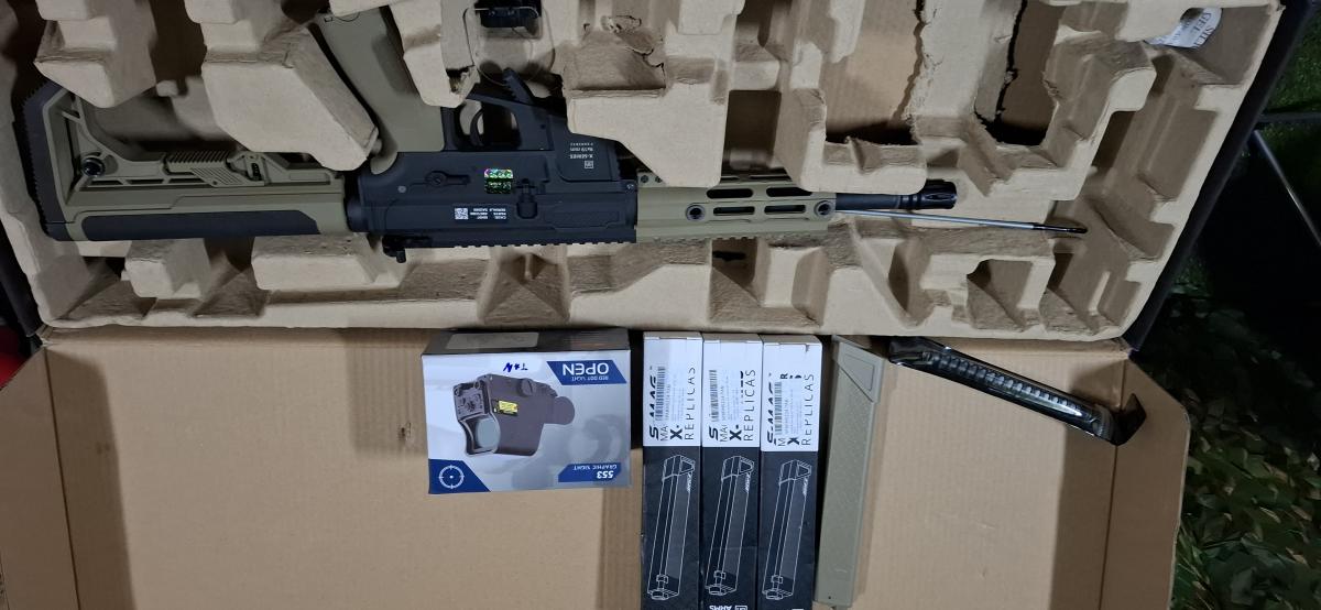 Eladó egy megkimélt 3-4 játékon járt specna replika. Könnyű darab. Cqb-re kifejezetten jó társ. Egy átnézés ráfér, ezzel nem szeretnék foglalkozni. Jár hozzá 3db midcap tár, 1db hicap tár, 1db tan színű holo, illetve a gyári doboza. Posta van a vevő terhére.