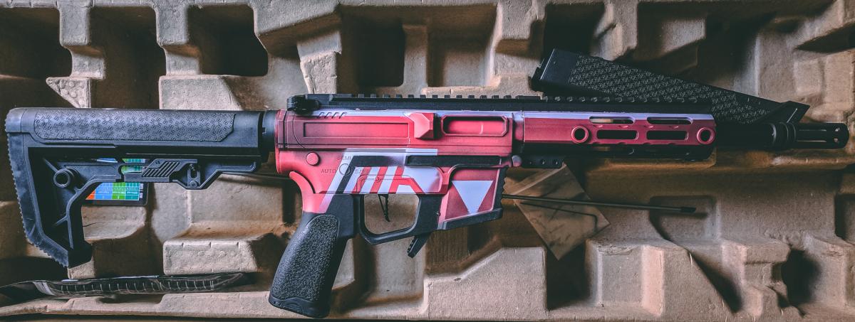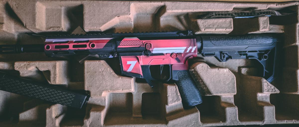 Fegyveren a világospiros a fény miatt ilyen, mélyvörös/candy :)