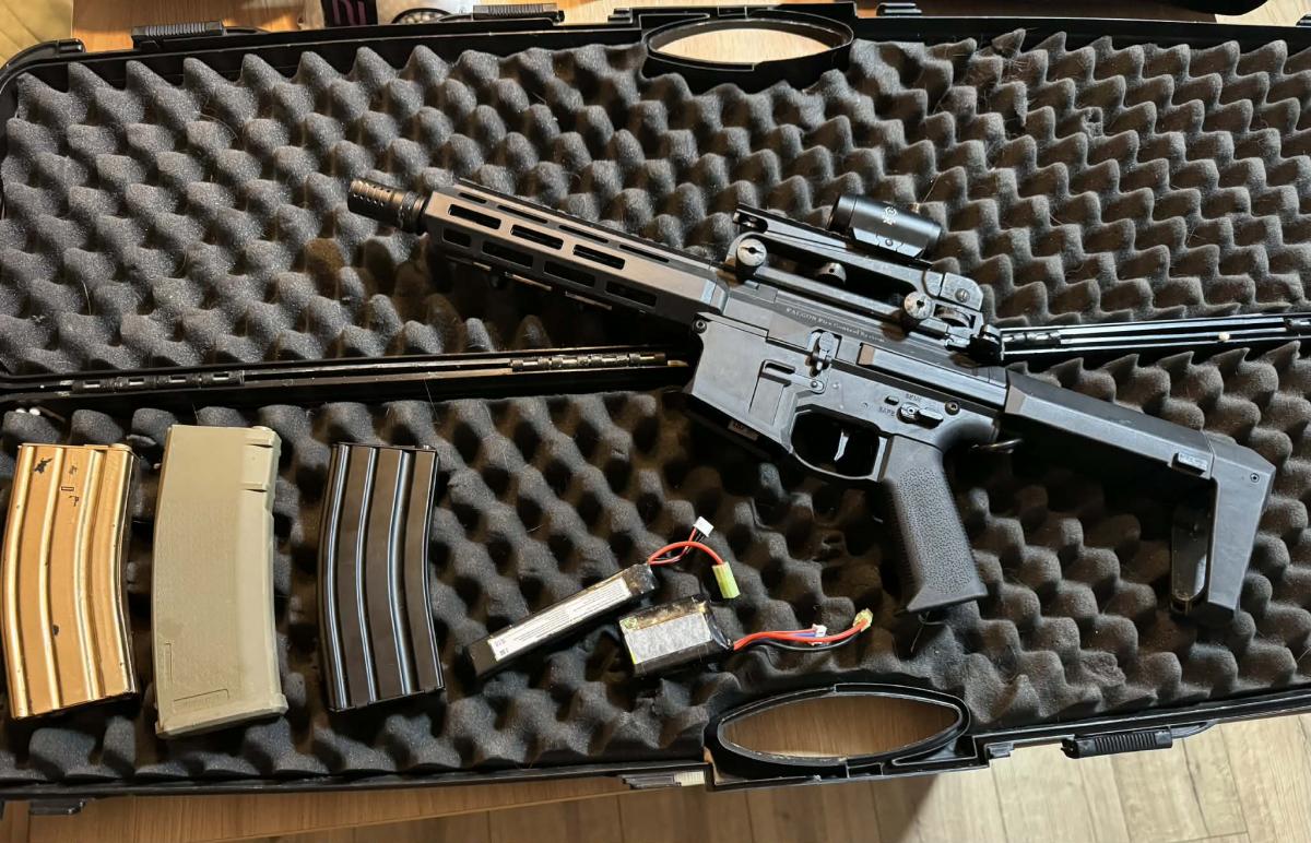 Eladó egy pár játékon már jó szolgálatot tett AEG. Taiwangunról rendeltem újonnan, azóta csak a hol up gumi lett cserélve benne Maple leafre. Adok mellé 3 db hicap tárat, the rá red dotot, egy M16 felső fogantyút, amivel a red dot megfelelő magasságban rögzíthető, 2 db 11.1-es Lipo akkut, amiből az egyik teljesen új és a hozzá tartozó töltőt, illetve egy keményfalú koffert.