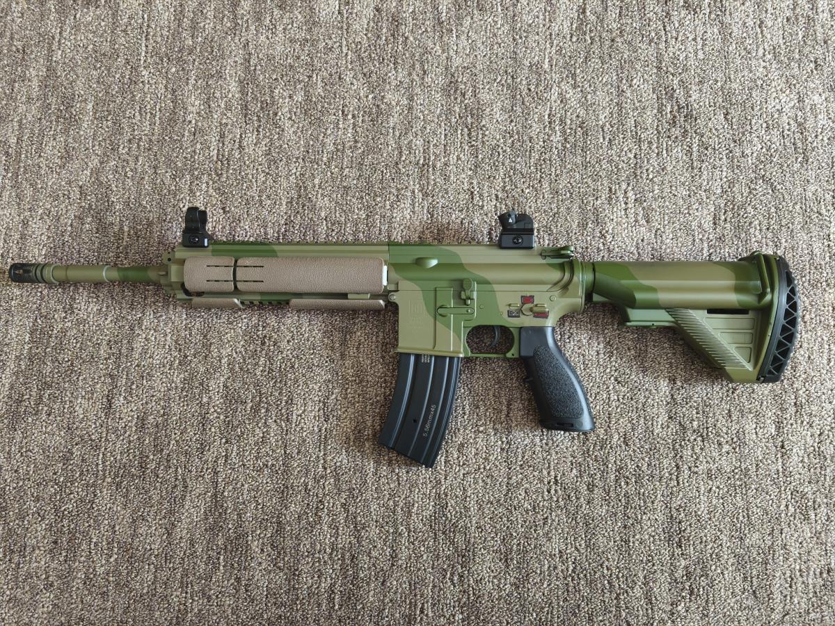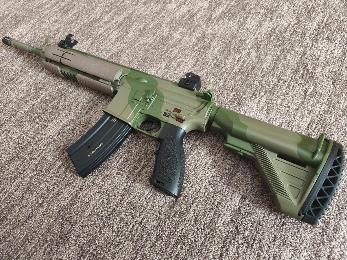 HK416D forma. Amit adok hozzá: Rail védő panelek, külső cső hosszabító, gyári alkatrészek.