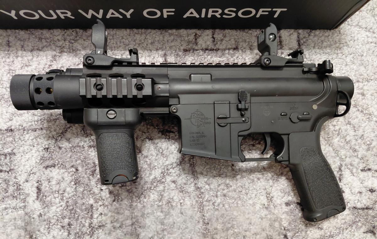 Eladó a képeken látható fém házas M4 replika, felső kategóriás Specna Arms. Tár nélkül. 98%-os, 1300 mAh beépített akkuval. A replika 20-as BB-re van optimalizálva, 110-es progressive rugóra lett cserélve a gyári M120. Ezzel a kis tuninggal villámgyors és nincsenek adagolási hibák. Orion V2 gearbox van benne X-ASR gate FET-tel. Hibátlan esztétikai és műszaki állapotban. 1.2 joule, 340 fps a teljesítménye, mérések alapján.