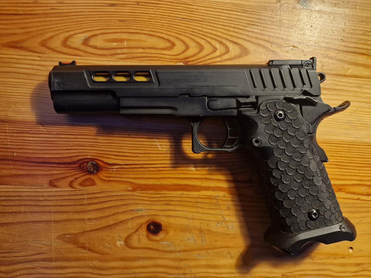Eladó a képen látható, megkímélt állapotban lévő taiwangunról vásárolt pisztoly eredeti dobozában. Pár játékon volt, kertben lövöldöztem vele. Nem volt gyilkolva, leejtve stb. Felhúzásra az összes lőszert kilövi, és néha megakad a szán a kakasban. Alkatrésznek is tökéletes, de ha nekiáll az ember meg lehet javítani. Adok mellé 2 tárat és egy becsatolós műanyag tokot. Az ár alkuképes. Piliscsabán megtekinthető, postázni tudom a vevő terhére, valamint személyesen át tudom adni budapesten, és a budapest esztergom vasútvonalon.