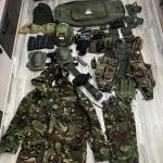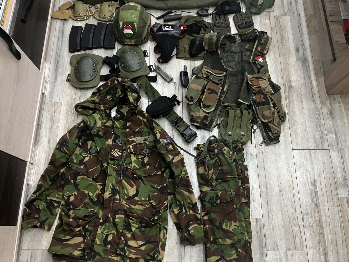 Taktikai cuccok: Mellény, tárdobó, öv, pisztolytáska, fegyvertáska, kezdő rádió.