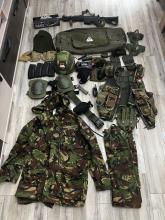 Ruházat: Brit DPM gyakorló szett 176cm vagyok 77kg rám passzolt tökéletesen. (nadrág + felső), minőségi taktikai kesztyű. L es.