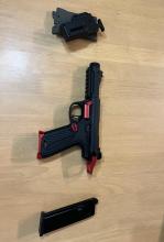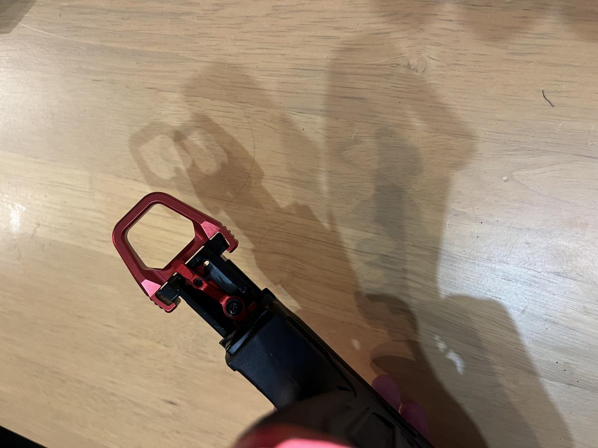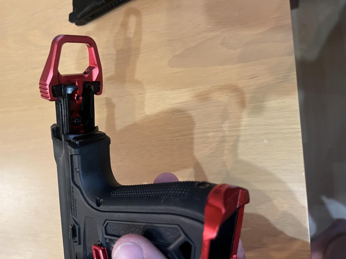 A pisztolyról hosszan: Kapott egy acél prec csövet és egy 4UAD gumit hogy szépen pörgesse a 0.32es bb-t, megkapta a TTI kalapács szettet, és egy CTM CNC BBU-t ami külső tűzváltó karos és sokkal könnyebb mint a gyári ezért többet köp másodpercenként. Kívülről van rajta egy felhúzó gyűrű, magwell, egy nagyobb tárkioldó, illetve egy novritsch universal holster-hez való tartó.