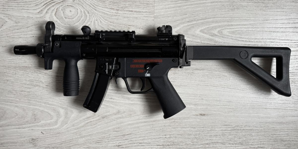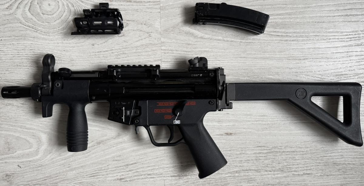Üdv! Költözne a képeken látható WE MP5K PDW gázos replika. Jár hozzá a gyári rövid tár, egy MLOK előagy, és egy rail, amire optikát lehet rakni. Került bele egy a gyárinál hosszabb Maple Leaf cső, valamint egy homokszínű Modify hop up gumi.