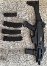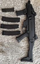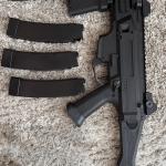 A fegyver gyorsrugó cserés, a képeken szereplő minden tartozékkal adom. 3db tár, egy első markolat, gyorstöltő és menet átalakító tracerhez. Kifotóztam egyetlen hibáját az elülső nyílt irányzékon, működését értelemszerűen nem befolyásolja.