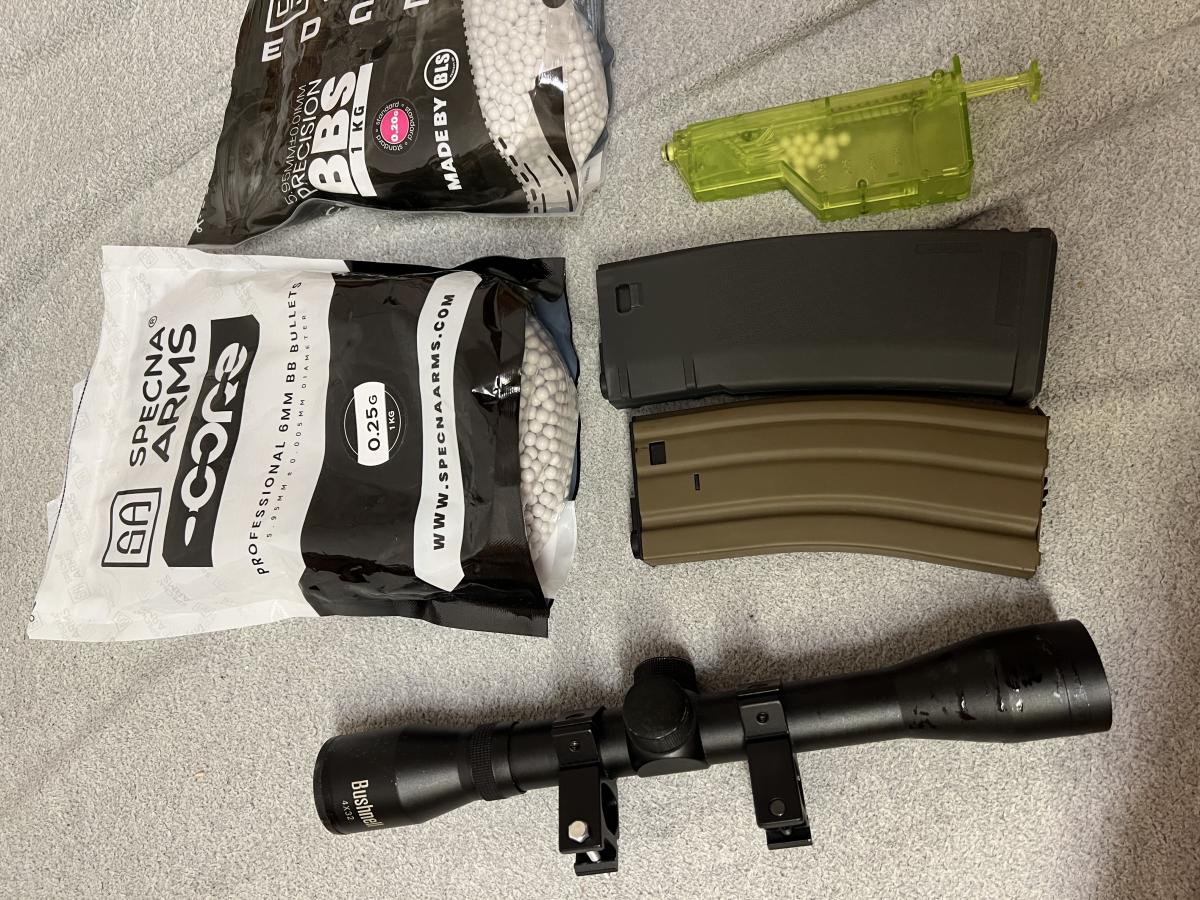 4x32 Bushnell távcső , a rögzítő nem gyári a csavar meg az anya pár forintért pótolható de én már nem használom