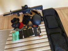 Eladásra kínálom kihasználatlanság miatt fejlesztett M4 replikámat és tartozékait. A fegyver fejlesztett kb 390FPS, full fém, van rajta egy red dot és egy hangtompító és egy taktikai grip a fegyver mellé adom az akksit és a hozzávaló töltőt, 3db szemüveget, 2db fémhálós arcvédőt, 5 db tárat amiből 3 db midcap és 2db highcap, egy taktikai mellényt és egy hordtáskát, csapat jelzőt, sisakot és egy hozzávaló kesztyűt. Köszi hogy elolvastad ha érdekel keress bátran.