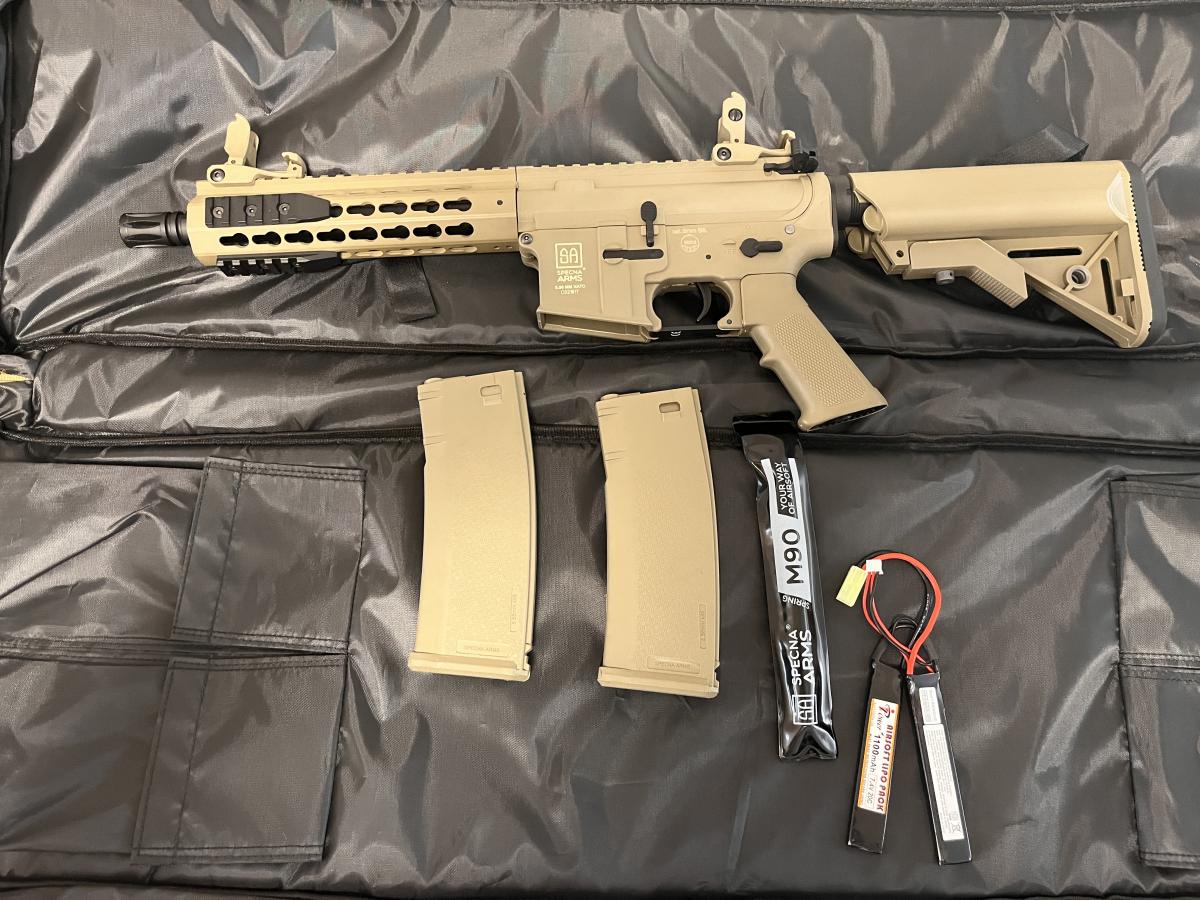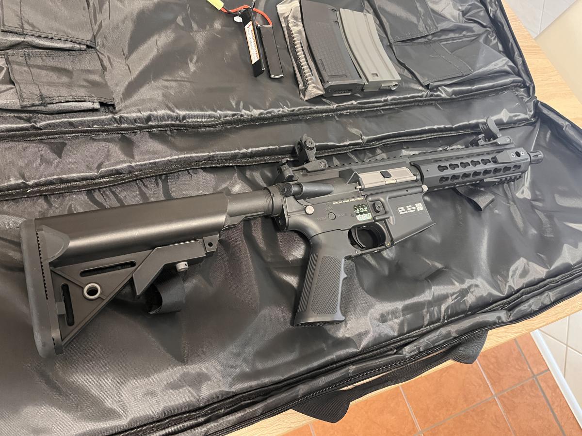 Eladóvá vált airsoft fegyverek tartozékokkal. Specna Arms márkájúak. Mind a kettő M4 replika, a különbség köztük a színük. Mind a 2 fegyverhez jár akkumulátor, táska, 2 db tár, illetve egy plusz rugó. Kifogástalanul működnek, alig voltak használva, kihasználatlanság miatt eladóak. Az ár darabra vonatkozik, tehát az 1 db fegyver tárral, táskával, rugóval és akkumulátorral értendő.