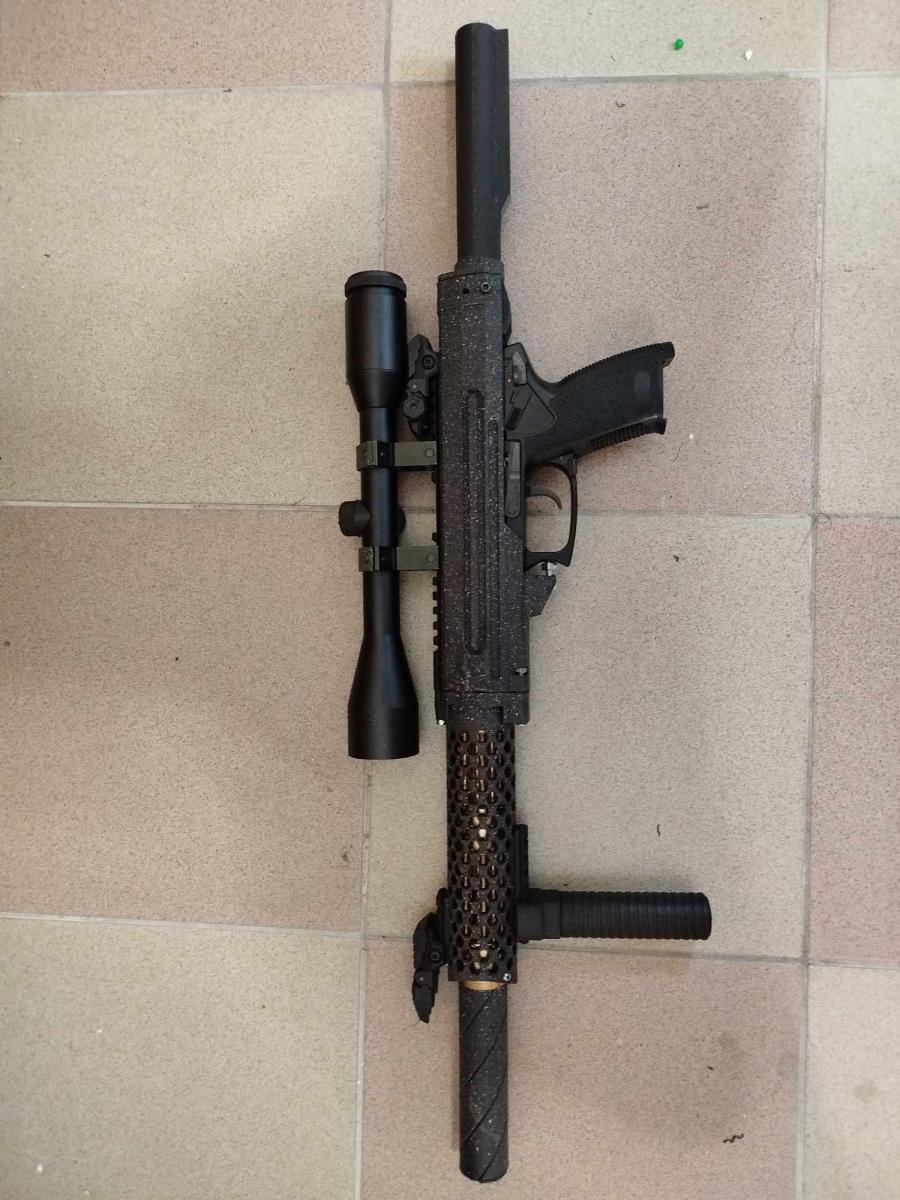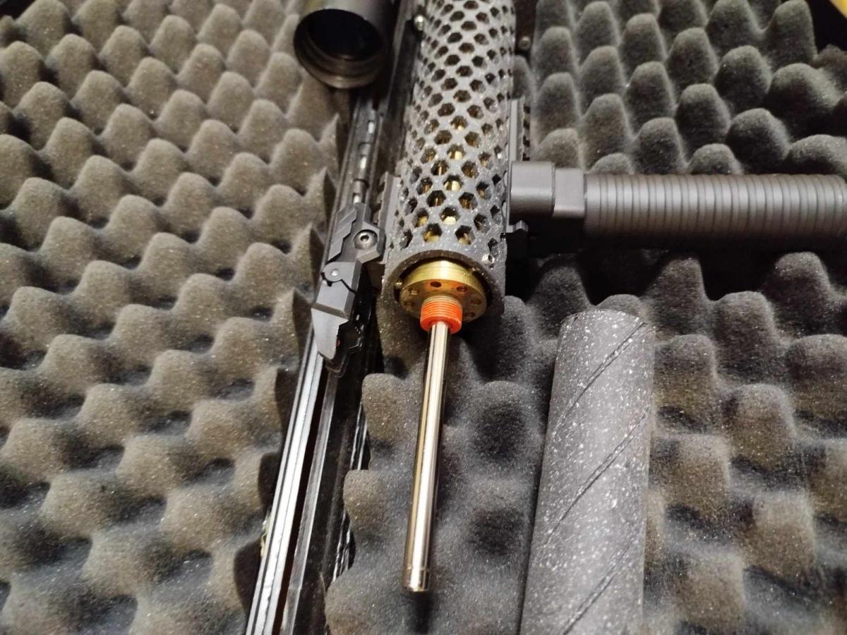 - Hangtompító - (a hosszú cső miatt csak ki van tömve, szivacsgyűrűkkel, rövidebb cső esetén funkcionál is.