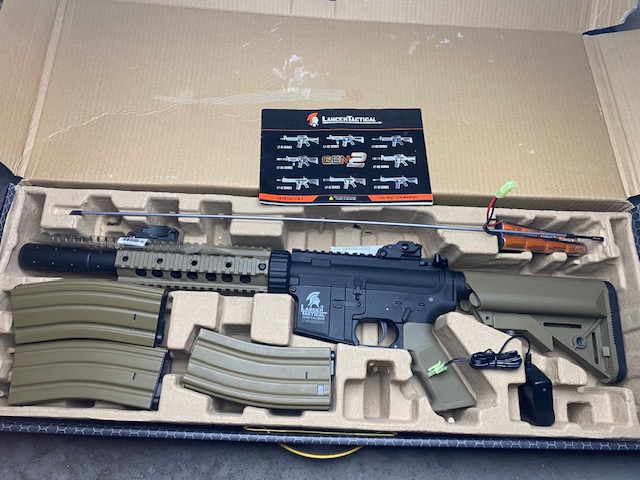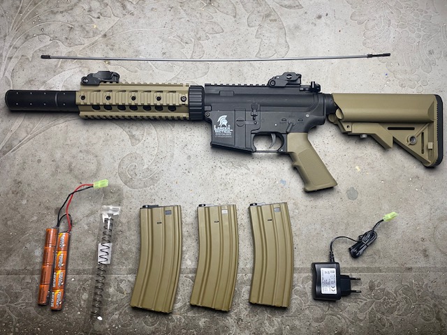 Szeretném eladni a Lancer Tactical LT-15 m4 AEG fegyverem, és tartozékait: 3db Hi-cap tár, 1db 9,6V NiMH akku, hozzá való töltő(Mini Tamiya csatlakozó), extra m120 rugó, és egy tisztítópálca. Egy játékon vettem vele részt, vagyis a puska majdnem gyári új. Eredeti dobozában tudom adni a használati utasításokkal együtt! Képeket igény szerint tudok még küldeni.