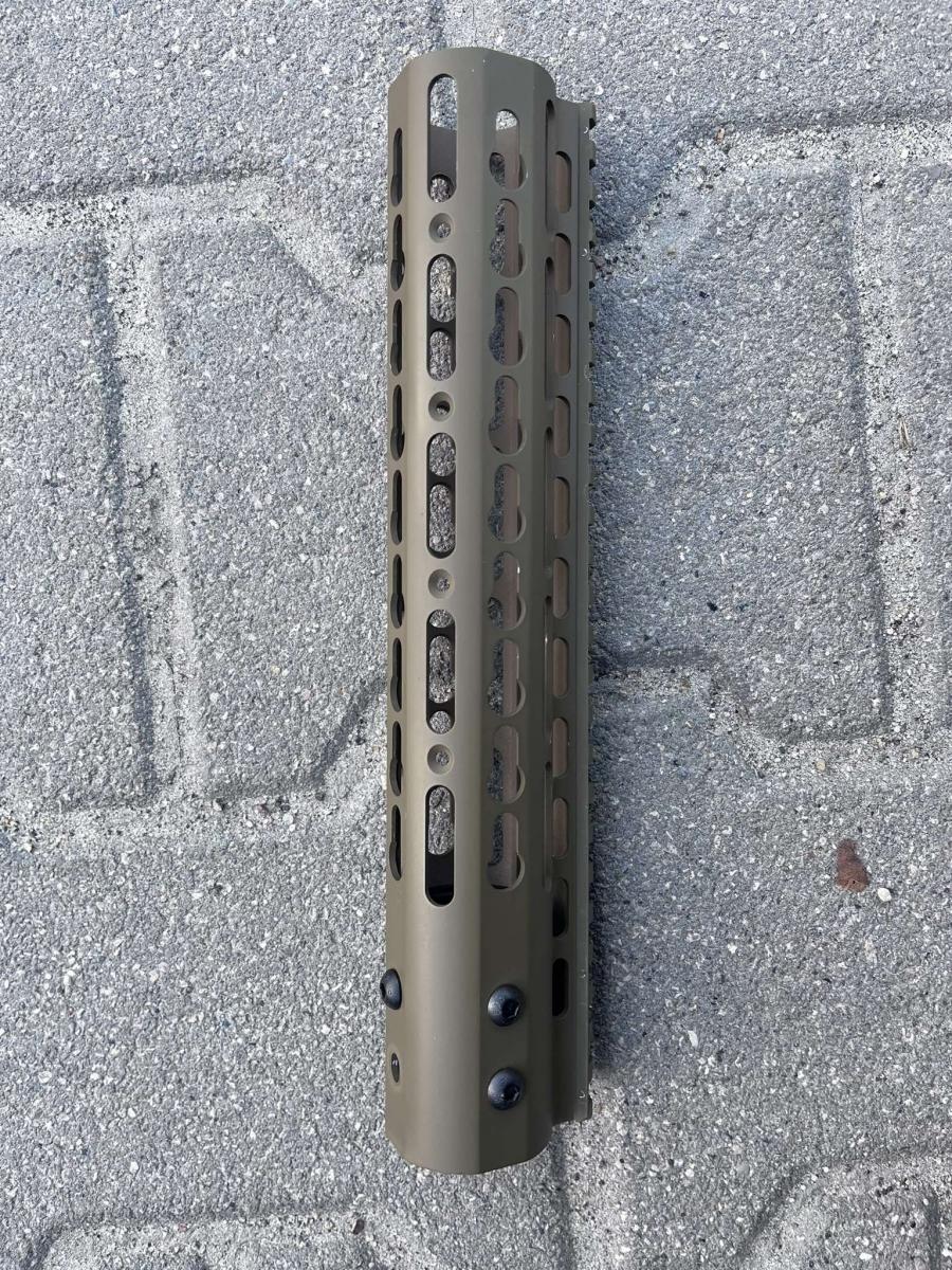Fegyverátépítés okán eladó a képen látható handguard. Kiváló állapotban, minimális karcokkal, két játékot futott. Ajándékba jár mellé a rail-re elegendő tan rail cover (lemaradt a képről).