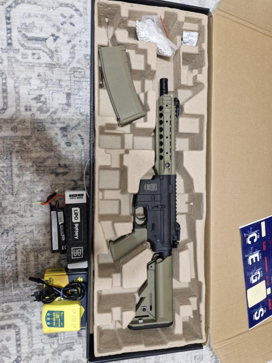Eladó új állapotú Specna Arms airsoft puska. 1 éve vásárolt, mellyel egyes és sorozat lövést is le lehet adni. 2-3 alkalommal kipróbált, szinte új állapotban van. Az akkumulátorja 2000 mAh órás, mely 1-szer merült le. Válltusa állítható hosszúságú. Kompletten, dobozában eladó akkumulátorral, töltővel, maradék töltényekkel.