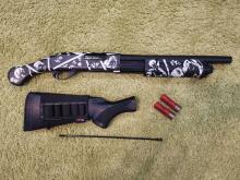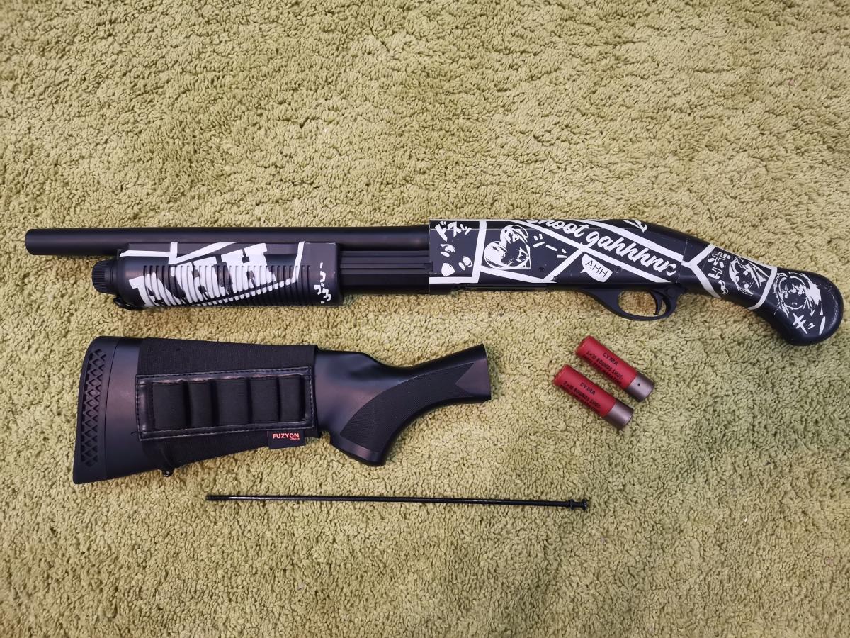 Eladó egy Gubesz79 által festett eredetileg cyma 350-es shotgun 2 db shell-el gyári alkatreszeivel, dobozával, tushoz való shell tartóval és egy gyöngyvászon tokkal.