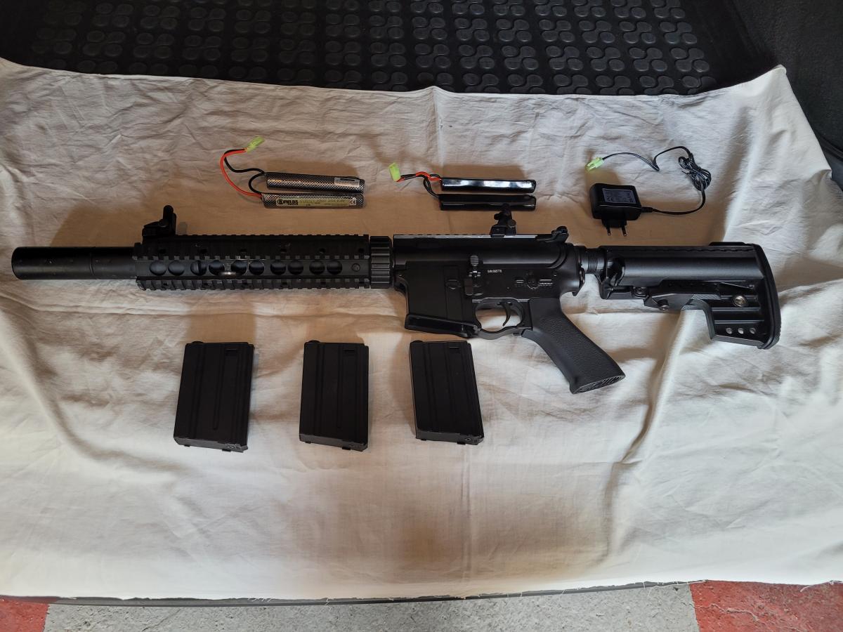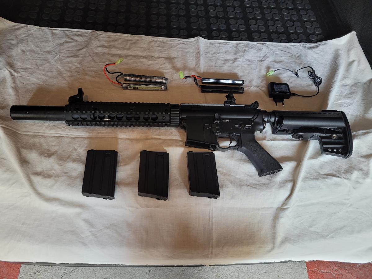 Eladó jó állapotú AR15 karabély.Hibátlan működés.3tár,2aksi+töltő jár hozzá. Nem postázom csak Százhalombatta vonzáskörzete 10km vagy Budapest X.ker.tekinthető meg ill.vehető át.