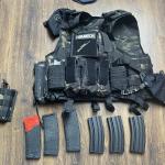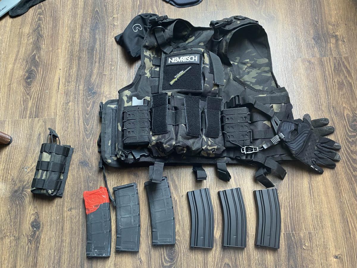 A képen látható kiegészítőkkel, mellényel, és a mellényhez tartozó zsebekkel. Maszkot és szemüveget is tudok adni, így ha most akarsz elkezdeni Airsoft-ozni egyből mehetsz is a pályára!