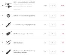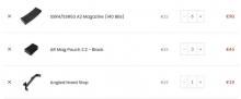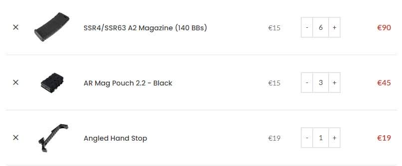 3 gyári tár, és 3 jobb minőségü fém tár van a fegyverhez, ezek mind 220golyós mid-cap tárak.