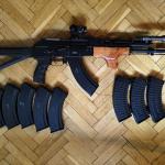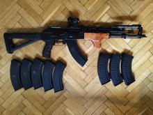 Eladó Cm048 alapra épült Akm build, a képen látható konfigurációban. 9 tár, aim-o dot, surefire replika. Frissen kapott kenést/ takarítást, új nózit és begadi gumit. Szépen lő, 1.3 J 0.32-vel.