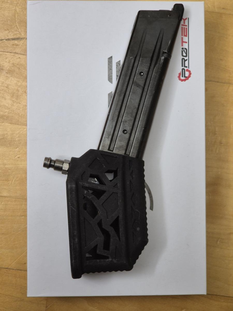 Egy Tokyo Marui tárral van szerelve és tökéletesen működik. Három alkalommal használta, de nekem nem jött be és inkább MP5 tár adapterre váltottam.