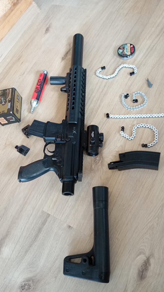 Az alap változat felhajtható flip-up irányzékokkal szerelt, de red-dottal és 1-4x24-es céloptikával is megvásárolható. A fegyver 88 g-os Co2 patronnal működik, mely a válltámaszban kapott helyet. A puska egyes lövések leadására képes, a lövedékeket a 30 db-os végtelenített szalag vagy heveder tárba kell betárazni. A puska érdekessége, hogy hagyományos diabolo (szoknyás) lövedékkel használható, csöve pedig huzagolt! A fegyver így nem csak gyors egyes lövések leadására képes, hanem meglepően pontos is. A légfegyver minden részletében izgalmas, kézhez vételkor alig várja az ember, hogy kipróbálhassa! Megbízhatóságát talán nem kell hangsúlyoznunk, elég róla annyit mondani, hogy a fegyver Japánban készült!