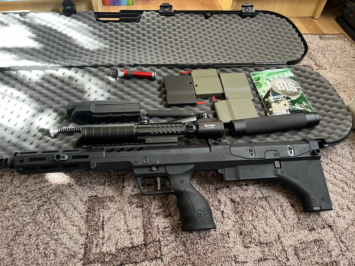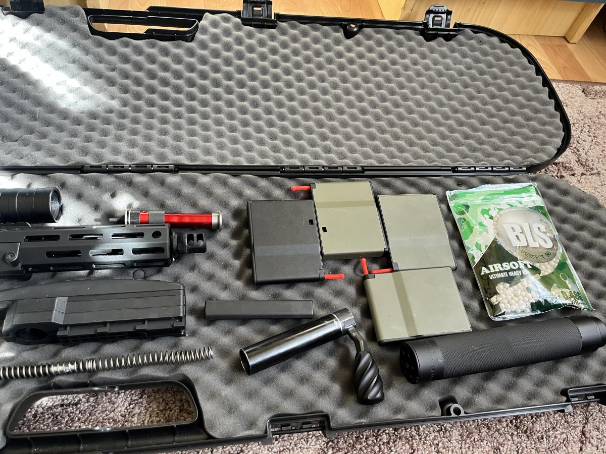 Eladásra kínálom Desert tech SRS A2 covert tehát fém mesterlövészem. A fegyver maga faceless tuninggal rendelkezik a gumit viszont AEG gumira csereltuk mert facelessel felrevitt. A test teljesen ki van szivacsozva. Silverback hangtompito jár hozzá. Pluszba adok mellé különböző erősségü rugókat, plusz dugattyút, faceless r hopot, kenopasztat, 4 fém tár, 3-9x távcső, spiralos felhuzógombot a gyarival egyutt, sulyokat a sulyozhato dugattyura, plusz egy novritch álcaruhát is a fegyverre. Fegyverkofferral egyutt adom plusz egy haromnegyed csomag 0.48 bls bbvel