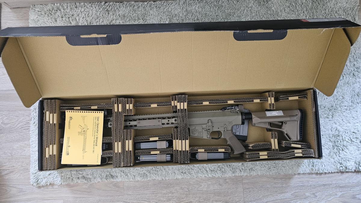 A replikához jár 6 db tár, egy csere nózi, a spéci koronás kulcs a szétszereléséhez, BB töltő gázos adapterrel, egy Magpul ACS váltámasz (ez van az éleshez is), doboza, papírjai.