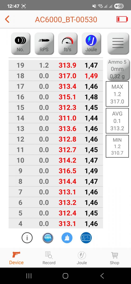 Modify M110 rugó – 1.47 Joule 0.32g BB-vel mérve.