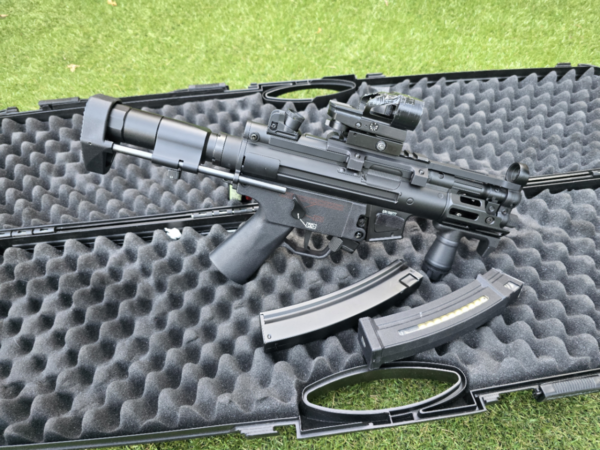 A CYMA CM.041L a PLATINUM kiadásban az MP5 rendőrségi géppisztoly gyönyörű, teljesen fémből készült másolata, továbbfejlesztett belső alkatrészekkel, nagy kadenciával, M-LOK alkarral és behúzható szárral. A fegyver nagyon jól megmunkált fémtesttel rendelkezik, kiváló minőségű kivitelben.