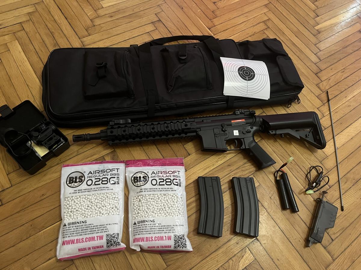 Optika, 2 mid-cap tár, közel 2kg BB, táska, gyorstöltő