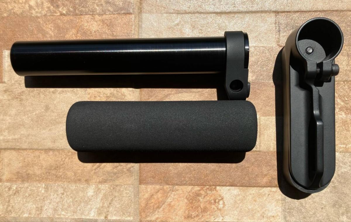 Az alkatrészek nagyon szép, igényes esztergált alumíniumból készültek, a gumi válltámasz-véget és a szivacsborítást leszámítva.