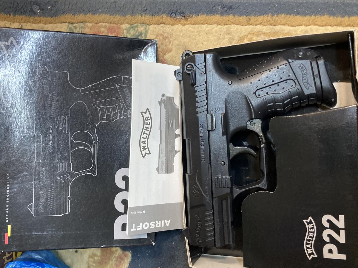 Walther P22 Rugós Airsoft pisztoly eladó, 2db tárral + 100db 6mm BB lövedékkel eredeti használati utasítás és adatlap bontatlan csomagolásban, ez a termék csak a fotók és tesztelés érdekében lett felbontva.