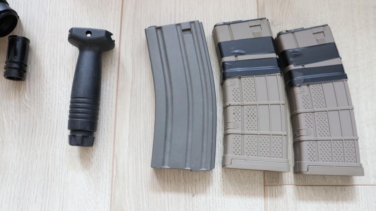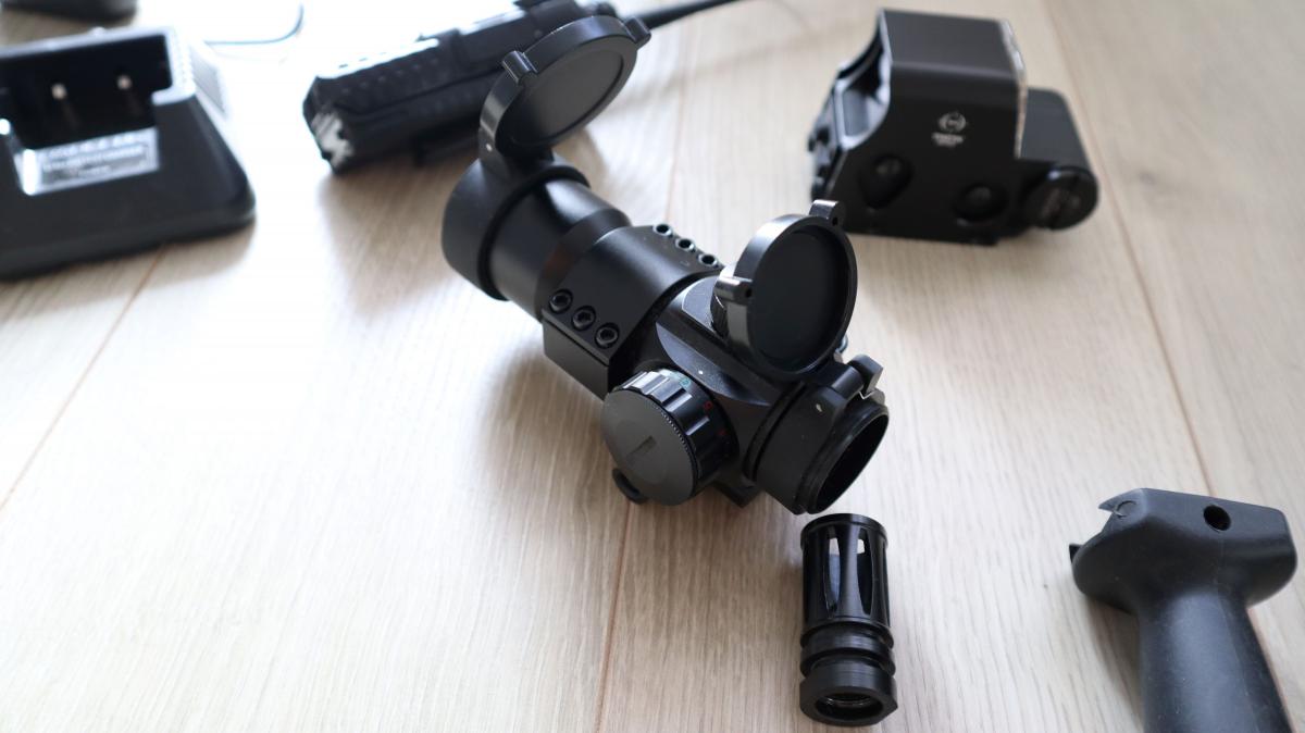 -ACOG optika: eladva (a gumi a külsején megadta magát, ragad, illetve belül az egyik lencse el lehet csúszva, de teljesen használható)