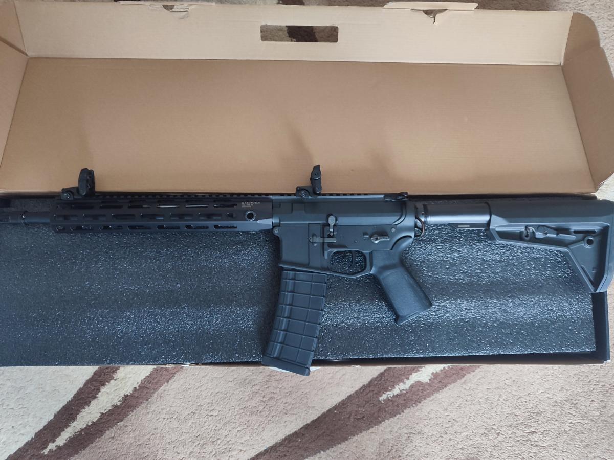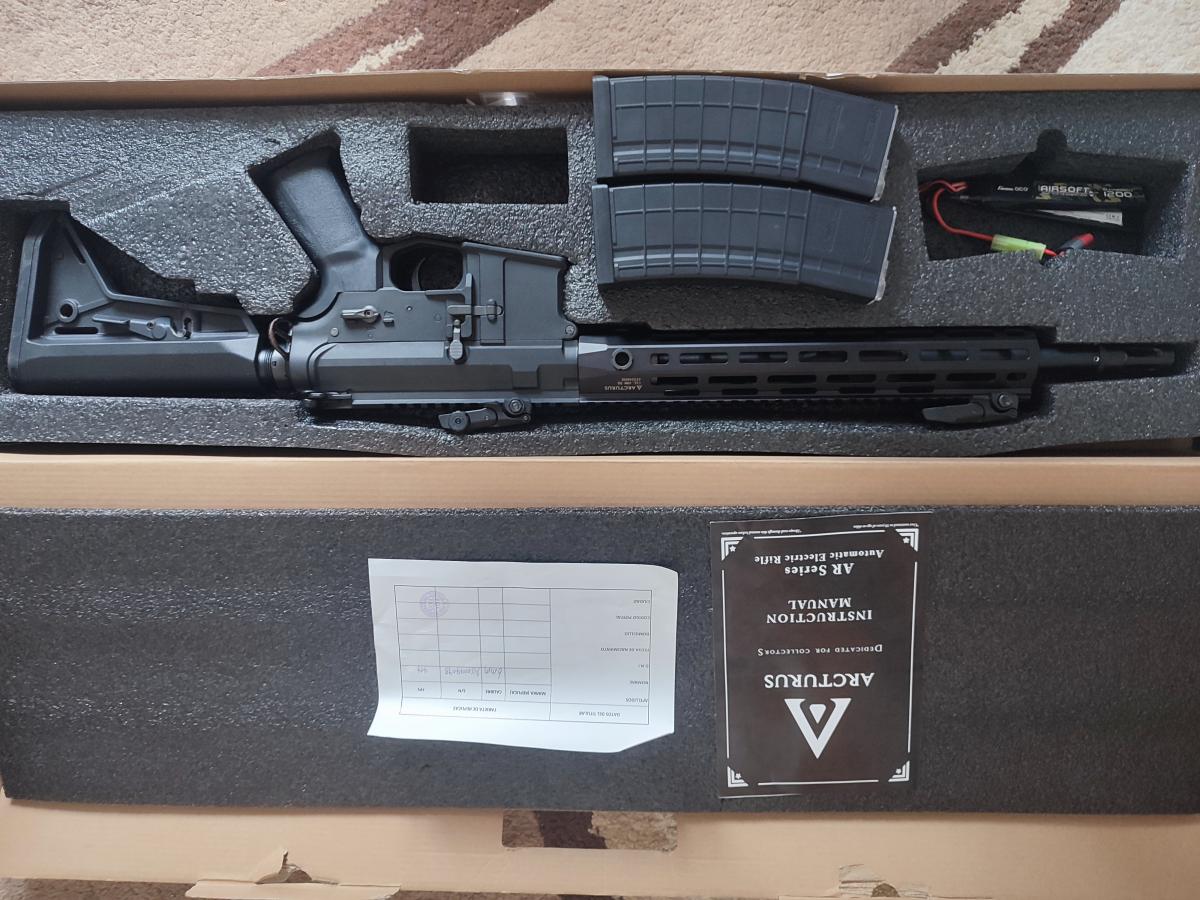 Sziasztok. Eladó Arcturus ar15 M4 AEG fegyverem, játékokon nem vettem részt, itthon játszottam vele 4,5 éve van meg a kor azért látszik rajta egy két helyen, fém hop up és új hop up gumi van benne takarítva volt vigyázva volt rá, akkumulátor és két tárat adom hozzá, meg van az eredeti doboza az eredeti használati útmutatóval és a gyári mért adatlap is.