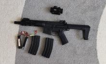 Eladó egy keveset használt, mindössze pár játékon használt Double Eagle M904g a képeken látható tartozékokkal (2db hicap tárral, 2db 11.1 és 1200 as akkuval + egy akku töltővel ami lemaradt a képekről + egy Walter reddot... Valamint van hozzá egy használt paintball maszk és bontatlan illetve bontott bb ezek nem árképzőek, ajándékba adom mellé...