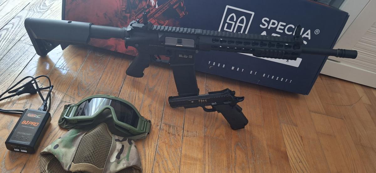 Eladó a képen látható felszerelés ! AR15 Replika márkája a képen látható, a pisztoly egy kjw kp-08 co2/green gbb